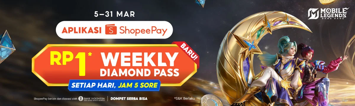 Para pemain Mobile Legends: Bang Bang (MLBB) kini punya cara baru untuk menghemat saat top up Diamond. ShopeePay resmi menghadirkan promo spesial Weekly Diamond Pass (WDP) dengan harga hanya Rp1 untuk periode terbatas.